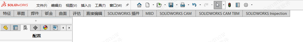 缺失按钮区一些必要模块区域,无法通过常规手段设定,常规的设定是在按钮区具体的选项卡【比如特征】上右键菜单显示出来。以及,按钮区选项卡上缺失部分功能的图标。