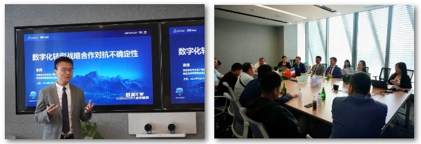 新思诺总经理顾佩磊、销售总监王运东陪同多位山东合作伙伴,与达索系统专业客户事业部销售副总裁吴俊杰、续订业务销售总监赫慧敏、高级业务发展经理袁博、数据业务高级技术经理范炜、3DEXPERIENCE技术顾问施克松、DELMIAWORKS高级技术经理邱志峰、续订业务销售经理郑阳、刘洁、孙凡等原厂领导,围绕数字化转型、技术创新以及业务发展的核心议题进行了热烈讨论和分享,为行业的未来发展注入新的活力和思考。