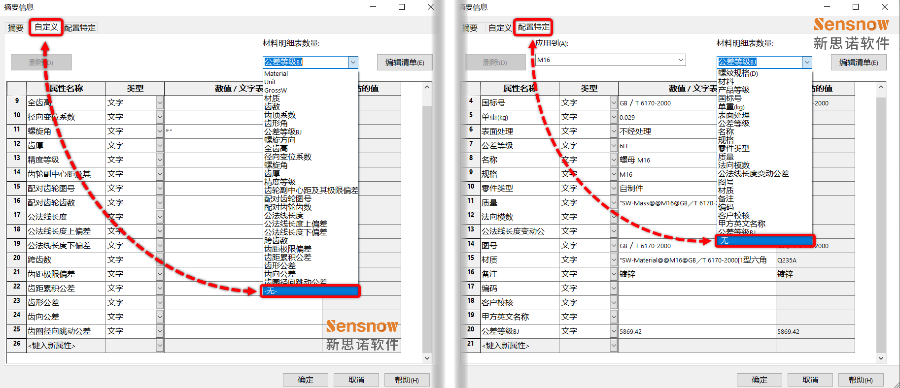 解决方案也很简单,从 BOM 打开有问题的子件模型,在子件模型的属性窗口中将自定义属性和配置特定属性的材料明细表数量下拉列表更改为'无'即可,更改为'无'后将统计的是此件在装配体中的实际实例数。