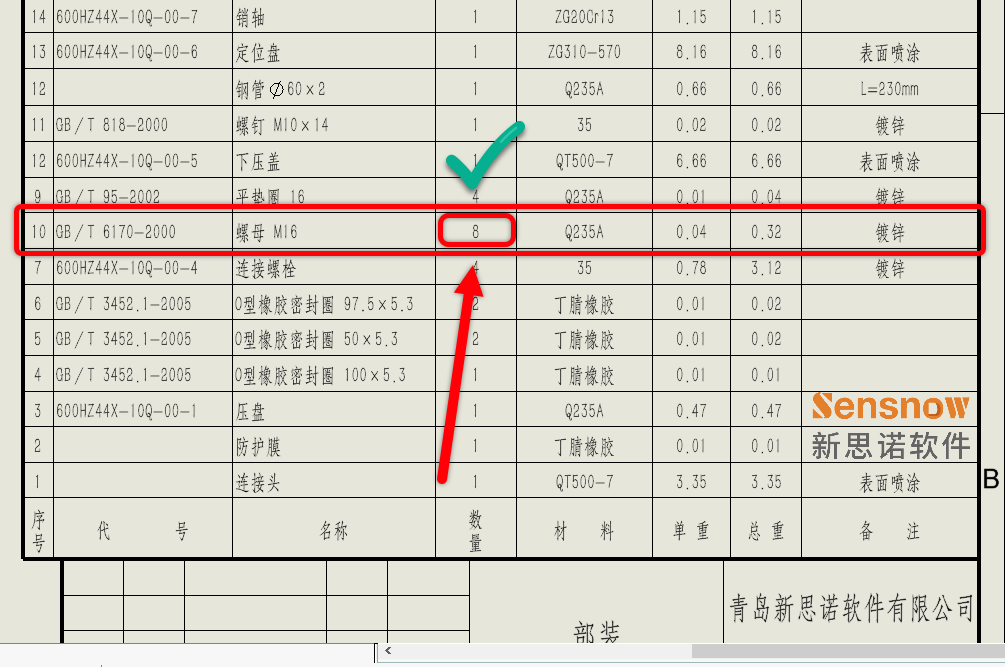 这是由于此子零部件模型的属性信息将材料明细表数量指定了属性值导致的。